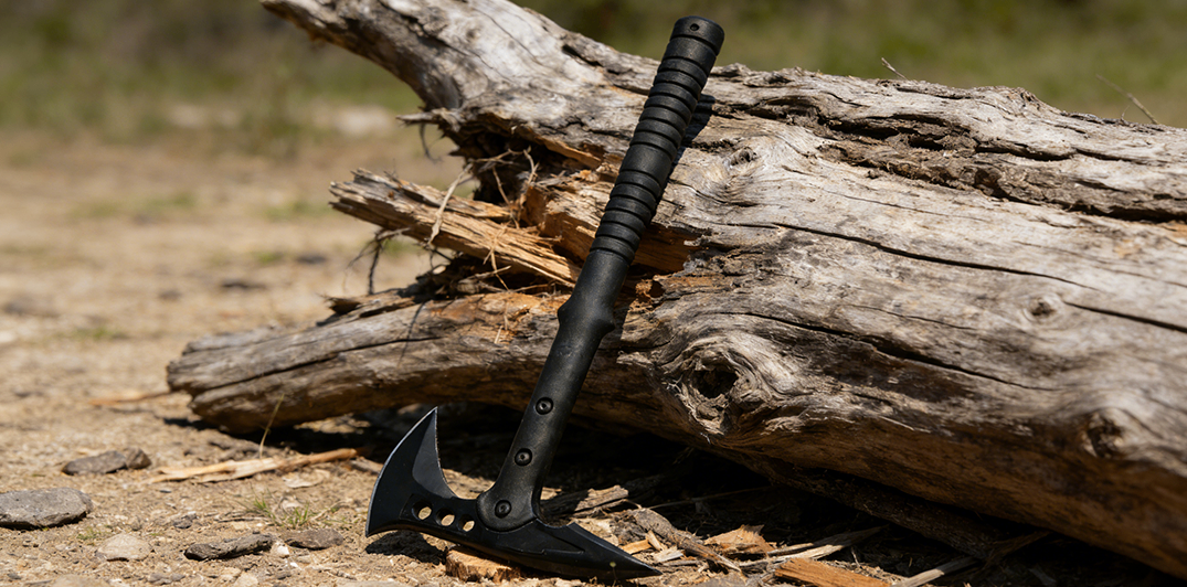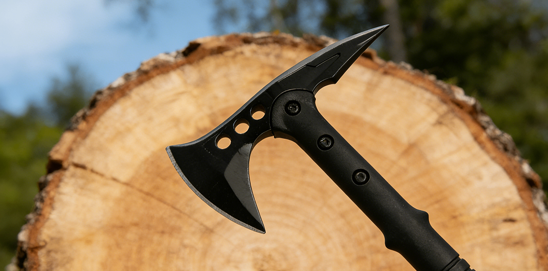 This compact, heavy-duty tactical axe is engineered for versatility in both outdoor and emergency scenarios. It features a sharp axe blade for chopping and a pointed window breaker tip for emergency rescues.