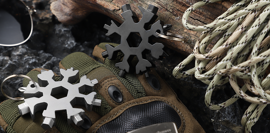 Complementing it is the ultra-portable 18-in-1 Snowflake Tool, which integrates internal and outer hex wrenches (3mm-14mm), a bottle opener, and screwdrivers into one innovative design.