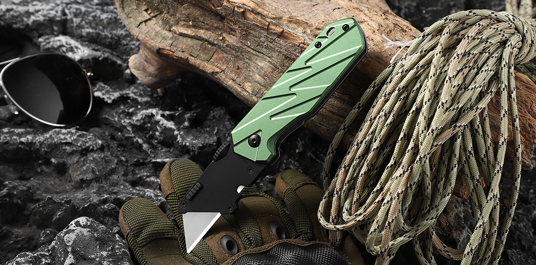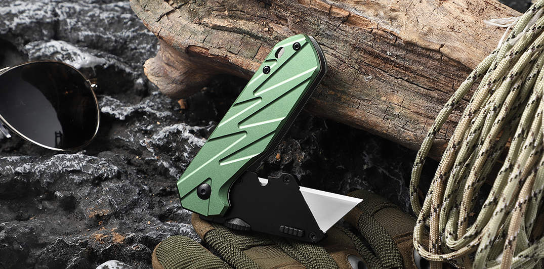 Tactical Folding Utility Knife with Forest Green Aluminum Alloy Handle