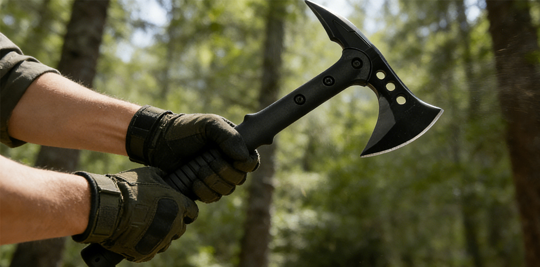 This compact, heavy-duty tactical axe is engineered for versatility in both outdoor and emergency scenarios. It features a sharp axe blade for chopping and a pointed window breaker tip for emergency rescues.