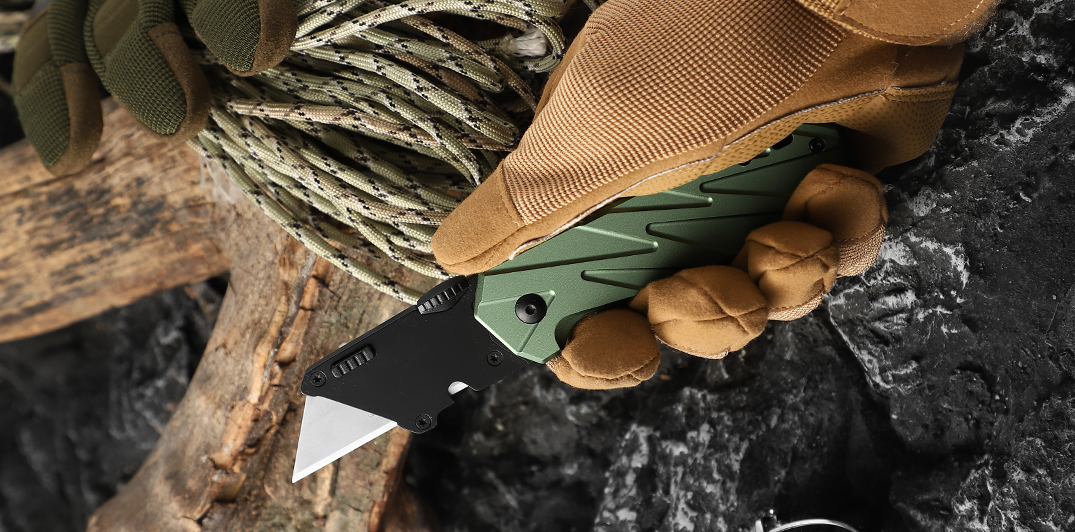 Equip yourself with the ultimate cutting tool: the Tactical Forest Green Folding Utility Knife.